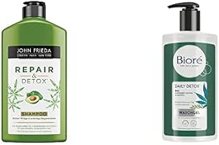 John Frieda Repair & Detox* Set für strapaziertes Haar und unreine Haut - Shampoo und Waschgel - Mit Hanfsamen-Öl - Mit Bioré Daily Detox* Waschgel, Set: 450ml
