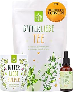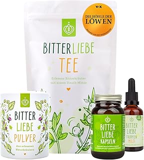 BitterLiebe® Premium Paket mild mit BitterLiebe Tropfen mild (50ml) Kapseln (90Stk.) Pulver (100g) und Kräutertee (100g) I Bitterstoffe aus Die Höhle der Löwen