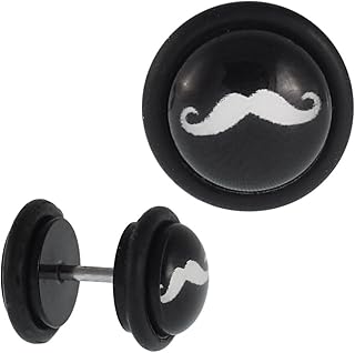Fake Piercing Plug schwarz mit weißem Mustache Schurbart Gummiring 7 mm
