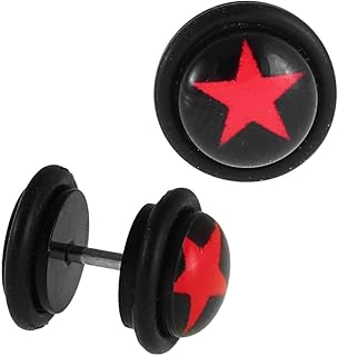 Fake Piercing Plug schwarz Stern rot Groß Gummiring 7 mm