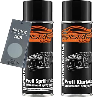 TRISTARcolor Autolack Spraydosen Set für BMW A08 Silbergrau Metallic Basislack Klarlack Sprühdose 400ml