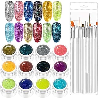 Freeorr 12 Farben UV Gel Nagellack Set, UV Farbgel für Nägel, mit 15 Nail Art-Pinseln Polish Nail Art Salon, UV LED Nagelkleber Nail Art Pigment Gel Kit-Set A