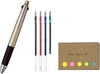 Uni-ball Jetstream 4&1 4 Color Extra Fine Point 0.38mm Ballpoint Multi Pen, Gold Barrel, 4 color Ink Refills, Sticky Notes Value Set