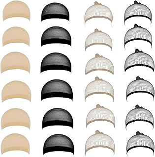 JZK 24 x Perücke Kappen Caps Haarnetz Perückekappe Mesh Perückennetz für Frauen und Männer, Beige/Schwarz