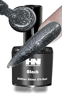 HN Hollywood nails Glitter Shine UV-Gel Black 9 g Pinselflasche, Glamoureffekt zum Streichen für Traumnägel