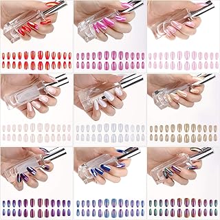 MWOOT Falsch Nägel, 216 Stück Künstlich Fingernägel, 9 Einfarbig Ersatznägel in 12 Größen, Glitzer Gelnägel für DIY Nagelkunst, Long Press-on Fake Nails, Nailart Holographic False Nails