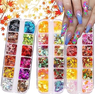 3 Boxes Maple Leaf Nail Sequins, Kalolary Colored Leaf Laser Nails Art Glitters Holographic Fall Leaf Thin Paillette Flakes Nails Stickers DIY Nails Supply Glitter Decorations