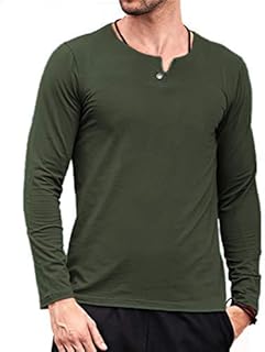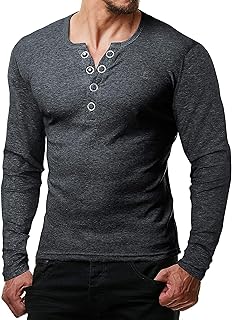 Herren Langarmshirt Henley Shirt Rundhals mit Knöpfen Langarm T-Shirt