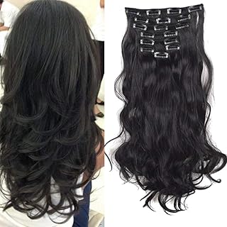 Cybelleza Clip in Extensions Haarverlängerung Haarteil wie Echthaar 8 Tressen Gewellt Günstig Haarverdichtung Synthetische Haare (Schwarz)