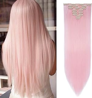 Haarteil Clip in Extensions wie Echthaar 8 Teile 18 Clips Günstig Weich Haarverlängerung Synthetische Glatt Haare 65cm-140g Hellrosa