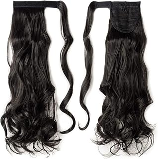 Pferdeschwanz Haarteil Clip in Zopf Extensions Synthetische Haare wie Echthaar Gewellt Ponytail Haarverlängerung 24"(60cm) Naturschwarz 100g