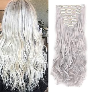 Clip in Extensions 8 Tressen 18 Clips Haarverlängerung wie Echthaar Haarteil Extensions Synthetische Gewellt Haarextension 60cm Silber grau