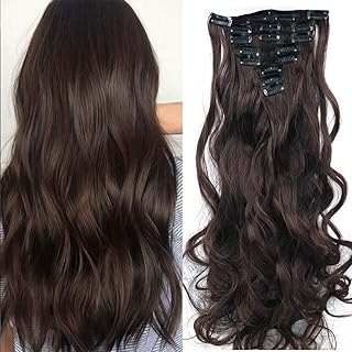Clip in Extensions wie Echthaar Synthetische Haare Haarteile 8 Tressen 18 Clips günstig komplette Haarverlängerung Glatt 65cm-140g Dunkelbraun