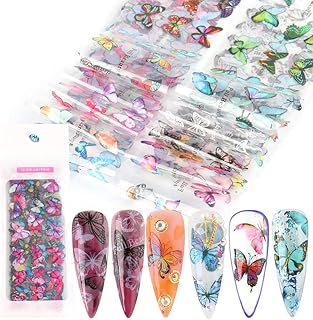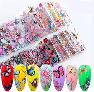 Kalolary 10 Blatt Schmetterling Nail Art Folie Transfer Aufkleber Abziehbilder Blume Nail Folie Klebstoff Aufkleber Sternenhimmel Maniküre Transfer Tipps Nail Art DIY Dekoration Zubehör Kit