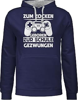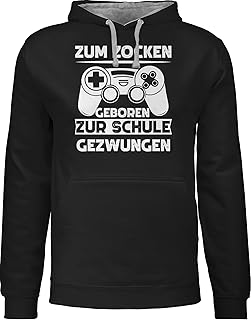 Shirtracer - Nerd Geschenke - Zum zocken geboren zur Schule gezwungen weiß - Hoodie zweifarbig und Kapuzenpullover für Herren und Damen