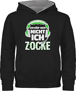 Up to Date Kind - Ich hör Dich Nicht ich zocke Headset Glitch Weiß Grün - Kinder Hoodie Pullover für Jungen und Mädchen