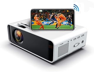 Mini Wifi Beamer DLP 3D HD Akku Lautsprecher Tragbarer LED Heimkino Beamer Video Projektor 3600 Lumen Unterstützt 1080P mit HDMI USB Audio Kompatibel mit iOS, Android, TV Stick, XBOX, Laptop, PS5, DVD