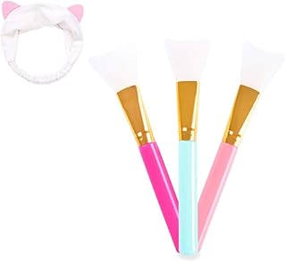 VOARGE 3 Stücke Gesichtsmaske Pinsel und 1 Katze Ohr Stirnband, Haarloser Gesichtsmask Pinsel Set, Kosmetik Make-up Gesicht Bürste für Gesichtsmasken, Augenmasken, Serum oder DIY