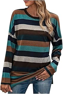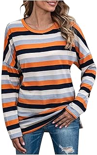 Nekosi Damen Gestreifter Pullover Farbblock Langarm T-Shirt Rundhals Lässiges Sweatshirt Gestreiftes Tunika Top