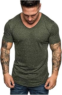 Yowablo T-Shirts/Tops Herren V-Ausschnitt Tasche gestreiftes Muster Casual Fashion Revers Kurzarm Shirt