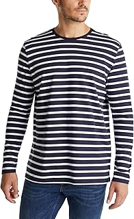 Herren Gestreiftes Shirt Baumwolle Longsleeve Leicht Basic mit Rundhals Ausschnitt