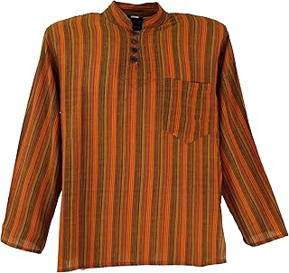 Nepal Fischerhemd, Gestreiftes Goa Hippie Hemd, Yogahemd, Herren, Baumwolle, Hemden Alternative Bekleidung