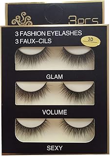 Lashes By Beauty First - 3x Pairs 3D Mink Faux Fur False Eyelashes Handmade Crosshair Reusable 0.2mm Eyelash Strip Non Magnetic Thicker Longer Natural Lashes In Black - GLAM, VOLUME & SEXY.