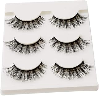 Sunniess Hair Imported Fiber Attractive 3D Mink Handmade Reusable Long Cross False Eyelashes Makeup Thick Natural Black Fake Eye Lashes 3 Pairs(3D-03)