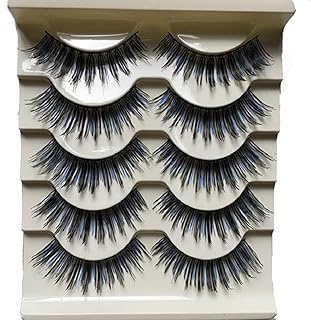 5 Pairs Long Thick Black and Blue False Eyelashes Night Club Dancing Eye Lashes