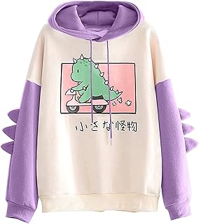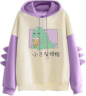 Damen Kapuzenpullover Teenager Mädchen Kawaii Dino Hoodie Pullover mit Kapuze Dinosaurier Sweatshirt Langarmshirt Oberteile Top ohne Taschen Outerwear