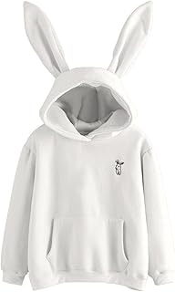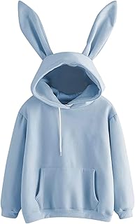 Damen Pulli Pullover Sweatshirt Teenager Mädchen Hasen Ohren Kapuzenpullover Top Kawaii Hoodies Langarmshirt Streetwear Herbst Winter Tops Bluse Hase Drucken Kapuzen Frauen Mode Langarm Mit Kordel